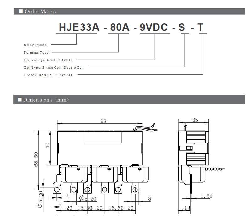 2. Для поддержания “открытого” или “закрытого” состояния реле напряжение катушки должно достигать номинального напряжения. Ширина импульса должна в 5 раз превышать время работы, чтобы обеспечить правильное изменение состояния. Не подавайте питание на оба Т1, Т2 и Т3 одновременно на двойной катушке и не подавайте питание на катушку дольше 1 минуты (может произойти повреждение катушки).