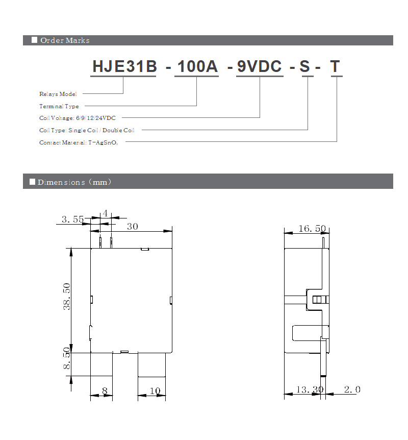 2. Для поддержания “открытого” или “закрытого” состояния реле напряжение катушки должно достигать номинального напряжения. Ширина импульса должна в 5 раз превышать время работы, чтобы обеспечить правильное изменение состояния. Не подавайте питание на оба T1, T, 2 и T3 одновременно на двойной катушке и не подавайте питание на катушку дольше 1 минуты (это может привести к повреждению катушки).