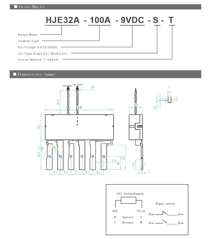 2. Для поддержания “открытого” или “закрытого” состояния реле напряжение катушки должно достигать номинального напряжения. Ширина импульса должна в 5 раз превышать время работы, чтобы обеспечить правильное изменение состояния. Не подавайте питание на оба Т1, Т2 и Т3 одновременно на двойной катушке и не подавайте питание на катушку дольше 1 минуты (может произойти повреждение катушки).